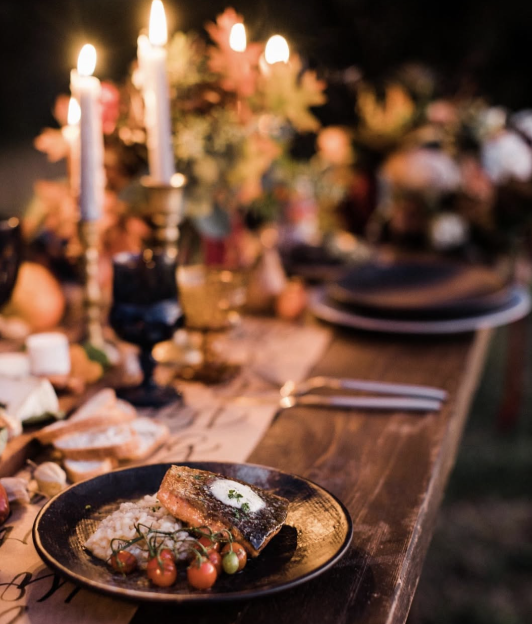 J Catering handles everything from elegant picnics to multi-course dinners, all prepared and served in your glamping setting.